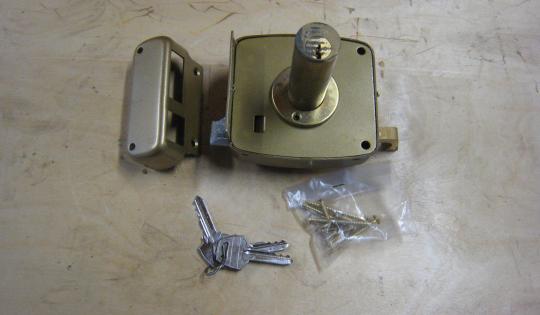 Paketti sisältää lukkolaitteiston, vastakappaleen, 3 avainta ja ruuvit. Kaiken mitä kuvassa näkyy.